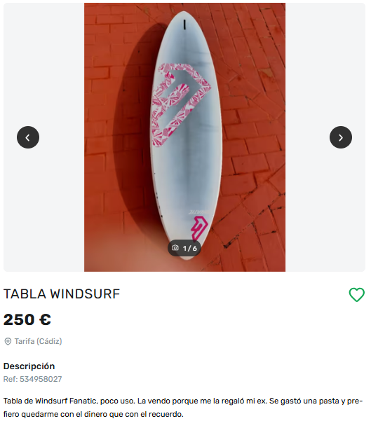 ¿Y qué venden estos ‘ex’? Las categorías con mayor número de productos publicados por ex-parejas pertenecen a ‘Moda y Complementos', seguido de ‘Aficiones y ocio’. A raíz del análisis, la plataforma ha detectado los objetos más llamativos que se ofertan en la app. Destacan productos como una tabla de windsurf -en cuya descripción se indica “Lo vendo porque me la regaló mi ex. Se gastó una pasta y prefiero quedarme con el dinero que con el recuerdo”-, una cámara Nikon D3300 -donde el vendedor especifica que la compró con su ex-pareja y, al poco tiempo, dejaron la relación-, un Xiaomi Redmi Note 12, con la pantalla trasera hecha pedazos tras ser estallado por su ex-pareja, o un oso gigante de color rosa, regalo de San Valentn.