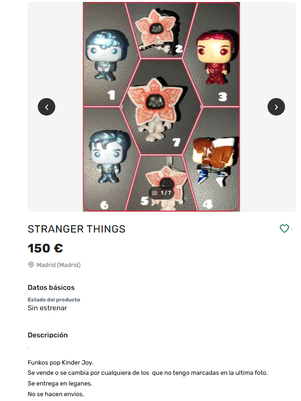 El furor por la serie de Netflix ha desencadenado un aumento en las búsqueda de productos relacionados con la serie en plataformas de segunda mano. Entre los productos, muñecos, vinilos y libros son las piezas de coleccionista más demandadas. El aumento de publicaciones dentro de la plataforma de segunda mano Milanuncios aumentó un 130% durante los meses previos al estreno de la última temporada. Canarias, Andalucía, Comunidad de Madrid y Cataluña lideran el ranking de las comunidades más fanáticas de ‘Stranger Things’. La fiebre del coleccionismo superó los 246.000 nuevos anuncios en 2024 en la plataforma y este sector alcanzó un valor de mercado de 60 millones de euros en 2023.