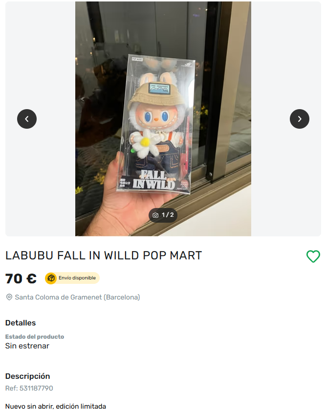 Respecto a los anuncios que pueden consultarse en la app, destacan los packs secretos de Sonny Angels cuyo precio oscila entre los 3€ y los 50€ mientras que en el mercado de la segunda mano el precio medio de los Labubu es de 36€.