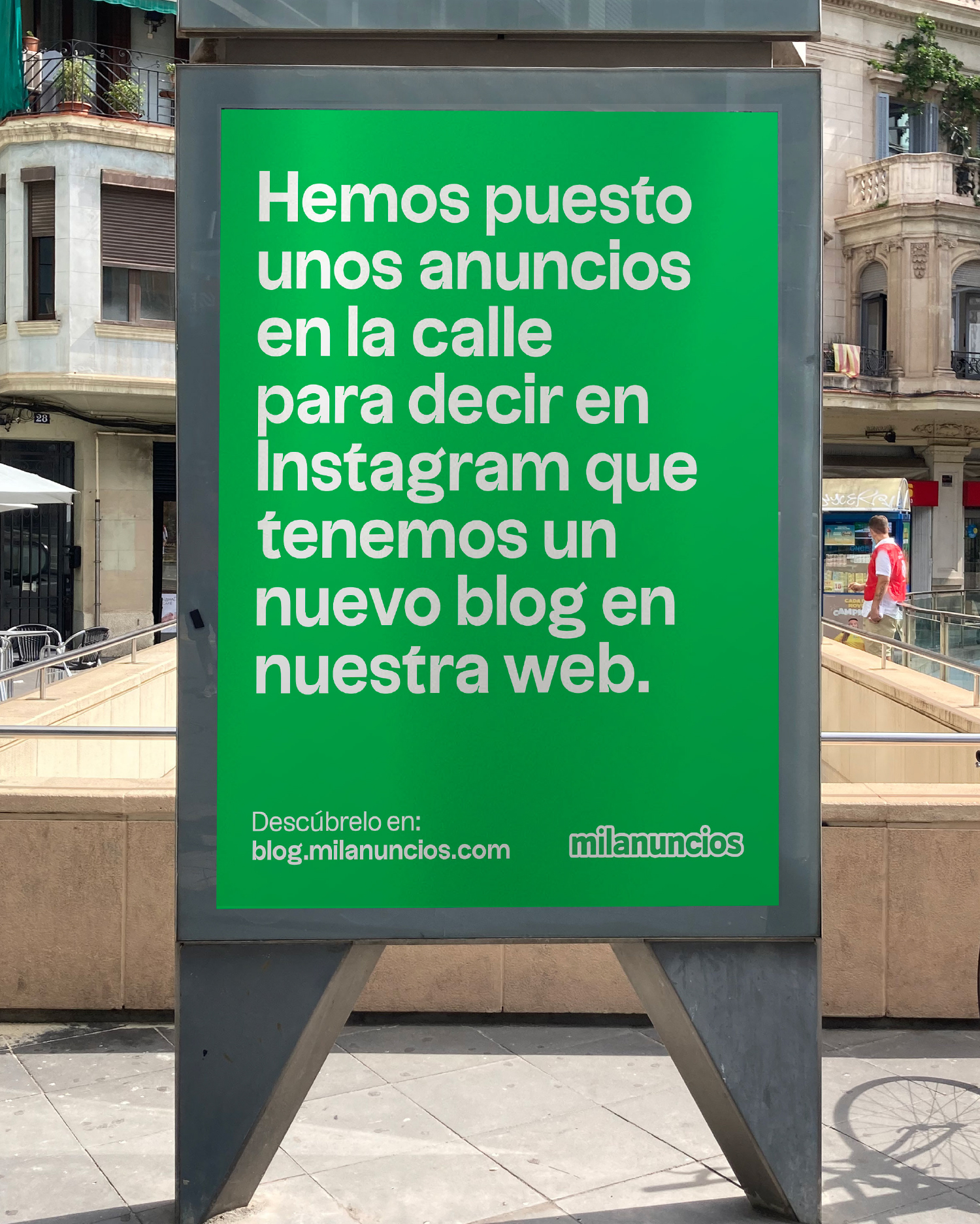 Otro de los “carteles” que forman parte de esta iniciativa dicta “Hemos puesto anuncios en la calle para decir en Instagram que tenemos un nuevo blog en nuestra web”. Una propuesta con la que la compañía de compra-venta de segunda mano quiere demostrar con humor que el hecho de que los blogs existan desde hace tiempo, no significa que hayan dejado de ser un buen canal de comunicación.